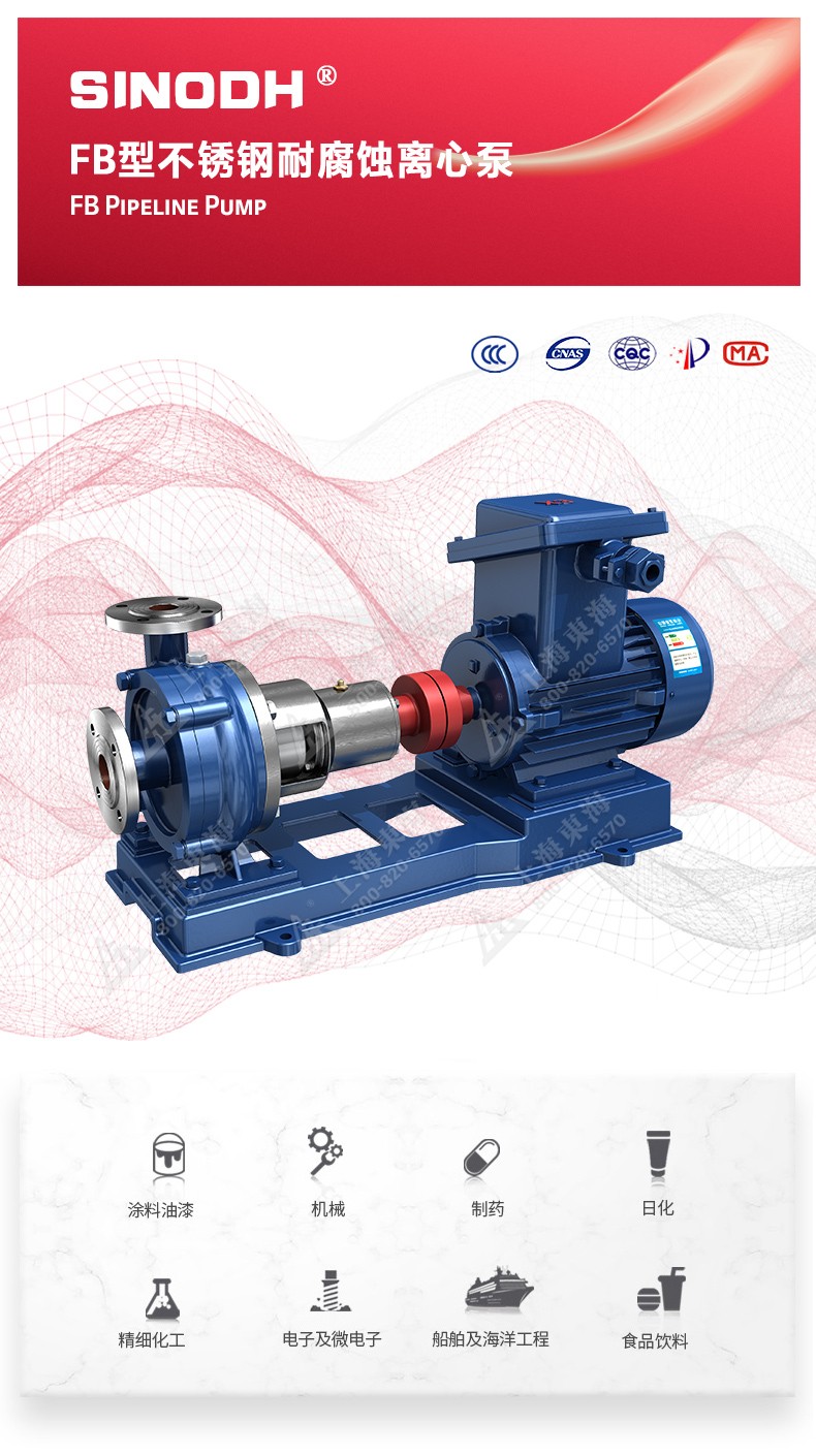 FB型不锈钢单级单吸悬臂式耐腐蚀离心泵,为MK在线登录官网自主研发生产。本系列产品适用于输送不含固体颗粒,有腐蚀性液体。被输送介质温度为-20℃~200℃,泵的进口压力不能大于0.2MPa,广泛用于石油、化工、冶金、合成纤维、制药、食品、酿造等工业部门,也可供工矿、企业及城市供水、排水之用。