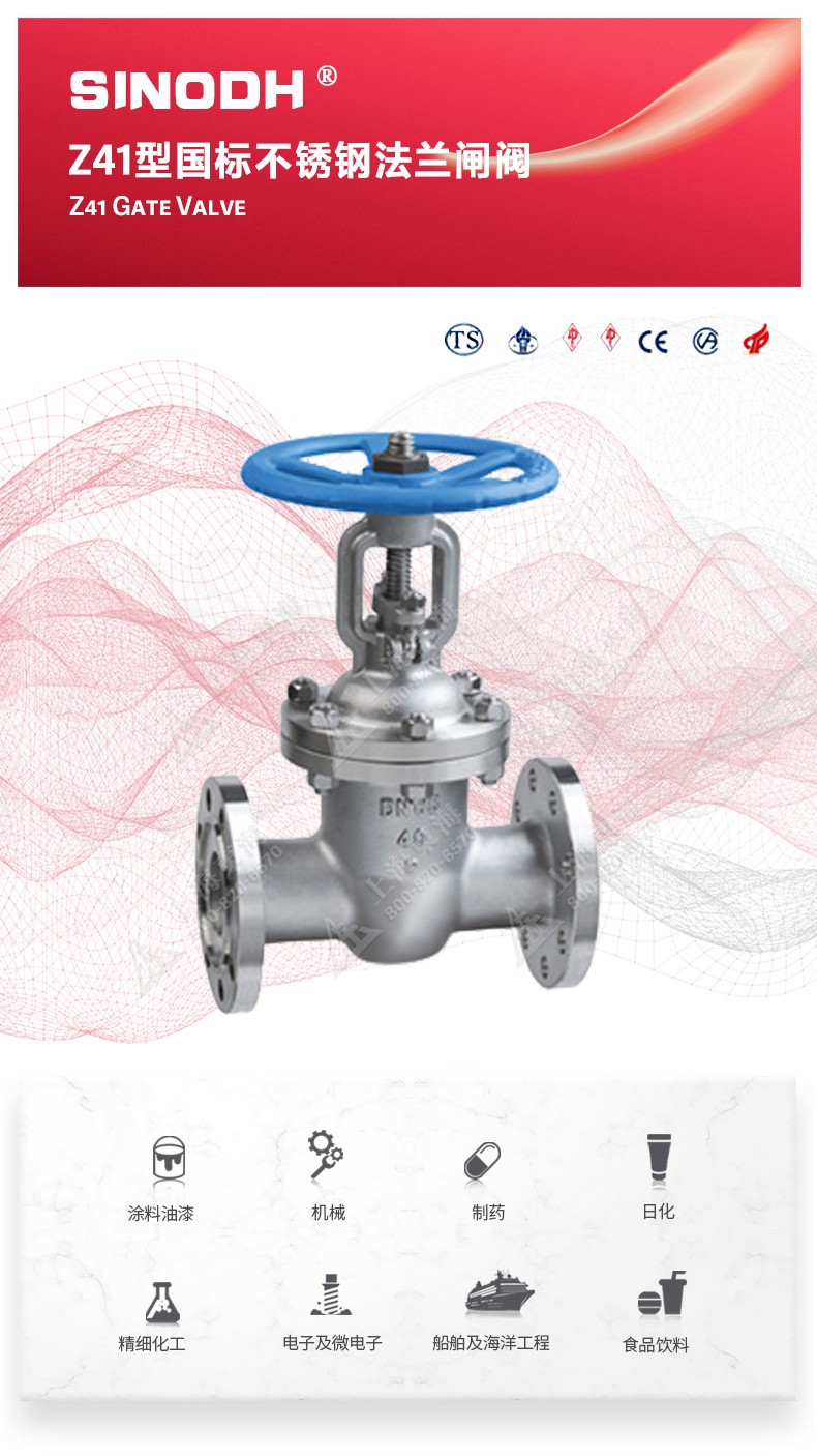 Z41型不锈钢闸阀,为MK在线登录官网自主研发生产。本产品是一种最常见的启闭阀,利用闸板的上下工作来接通(全开)和截断(全关)管道中的流体介质。此类闸阀广泛用于自来水、污水、建筑、石油、化工、食品、医药、轻纺、电力、船舶、冶金、能源系统等体管线上作为调节和截流装置使用。