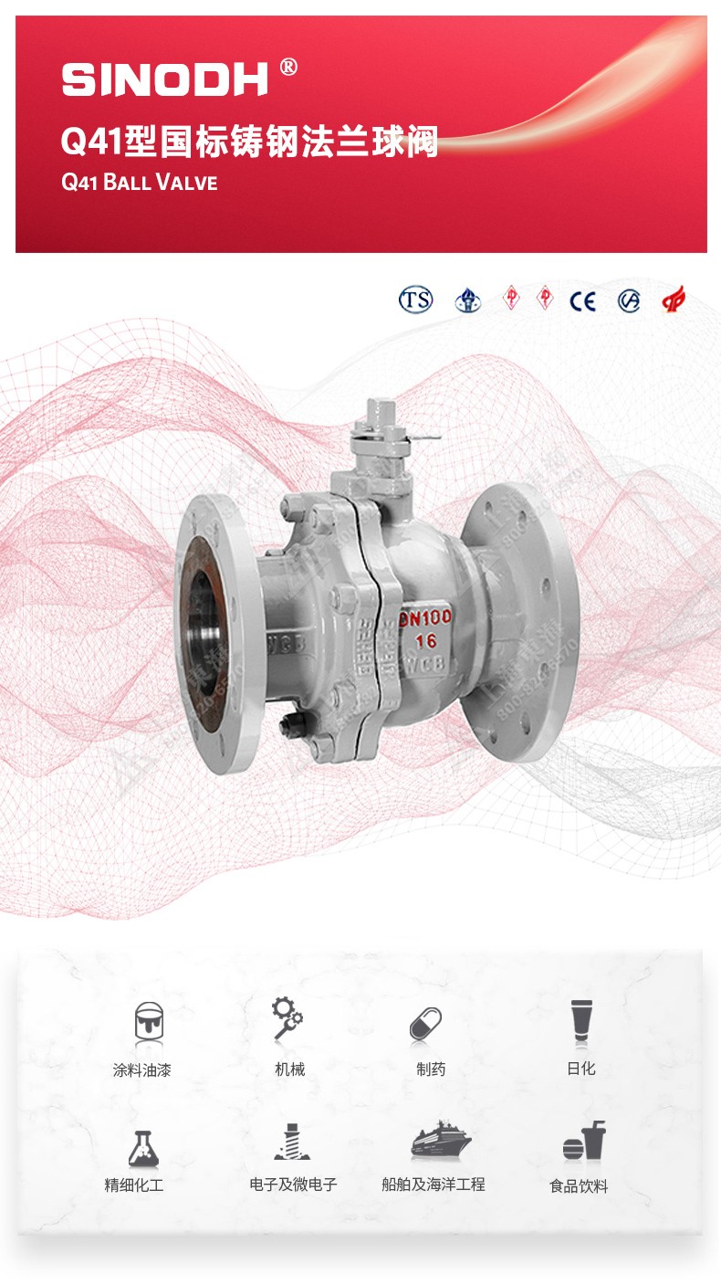 Q41型国标铸钢法兰球阀,为MK在线登录官网自主研发生产。本产品设计制造标准符合GB/T12237、GB/T12224标准。该产品的球体在介质压力作用下球体能产生一定的位移并紧压在出口端的密封面上,保证出口端密封。适用于水、溶剂、酸和天然气等一般工业介质也适用于工况恶劣的介质,如氧气、过氧化氢、甲烷和乙烯等介质。